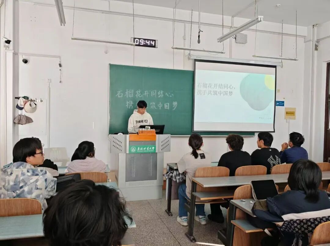 各班级立足专业特色,围绕“石榴花开结同心 携手共筑中国梦”主题开展班会,将民族团结理念与专业实践深度融合。活动中,师生共同解读“石榴籽紧紧抱在一起”的深刻内涵,探讨青年以实际行动维护民族团结的路径方法,在深化政治理论学习的过程中,进一步筑牢“各民族一家亲”的思想根基。