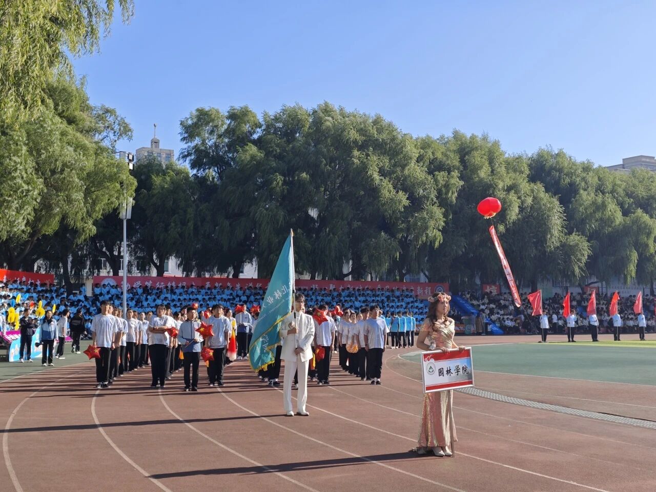 开幕式上,我院检阅队伍迈着铿锵有力的步伐走过,师生们精神饱满、步履昂扬,经过主席台前精彩亮相的“花朵”,象征园林师生始终践行“格物致知 天人合一”的院训,花开盛世,逐梦园林!