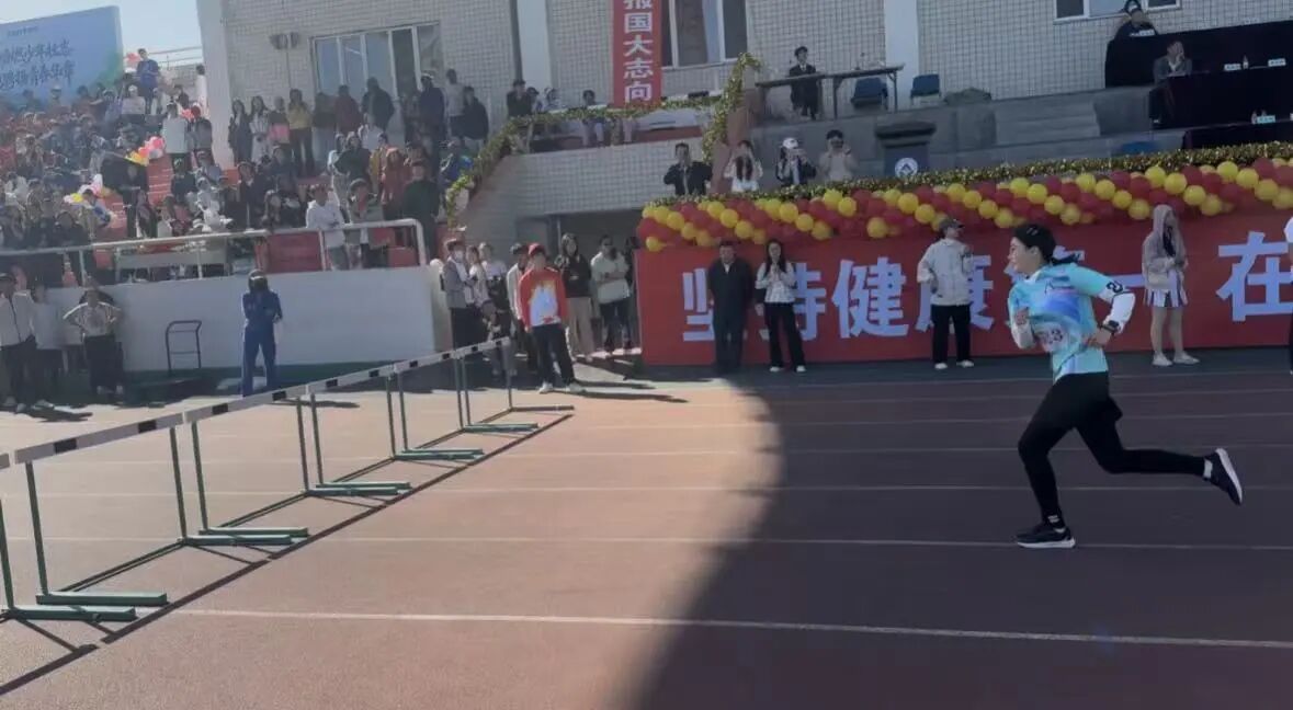 第一个比赛日,赛场边的欢呼声此起彼伏,我院迎来了本届运动会参赛的第一位运动员—100米 栏项运动员,2025级本科生李文慧同学。身着蓝绿色运动装、扎着双马尾的她,站在起跑区,双手轻轻握拳活动手腕,眼神中既有对比赛的期待,也藏着几分首次挑战的紧张。