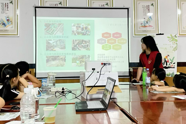 预热活动正式实施期间,团队线上通过问卷星回收有效问卷 128 份,线下由张珂佳在社区服务中心设摊,邀请居民填写纸质问卷并开展 “花园需求” 访谈;同时,成员将闲置物品集中整理,在长春青怡坊与合肥富华社区开展交换与义卖;在马郢社区广场,团队组织 20 名儿童活动,讲解疗愈花园理念与村史后,引导儿童手绘花园设计图、共绘社区花园地图,收集 32 份设计稿,“螺旋花坛”“轮胎花盆” 等创意被纳入正式方案。