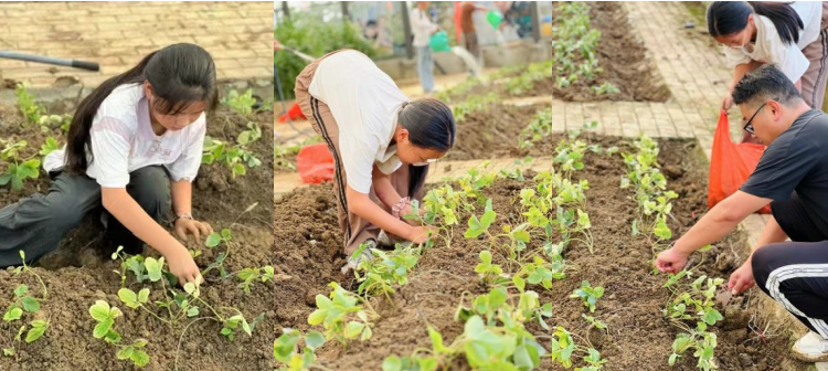 方案设计上,团队结合调研与儿童创意,设入口木质花架,打造轮胎花园、彩绘墙、圆形螺旋花坛,精选“药用 + 芳香 + 观赏” 植物适配本地气候。材料寻找中,团队从社区获取闲置轮胎改造,因社区木材不符,线上采购长杉木制木桩座椅,用锯木屑改良土壤。团队按设计图用石灰画轨迹,因杉木较细重购粗松木,后期调整沉降木桩;8 月 23 日小队成员与 4 名儿童绘墙绘,完成 10㎡社区共创成果;8 月 25 日,小队成员与居民清除杂草、改良土壤,按螺旋分层种植物,铺石板步道、种植花草。历经 15 天营建,花园核心景观完成。