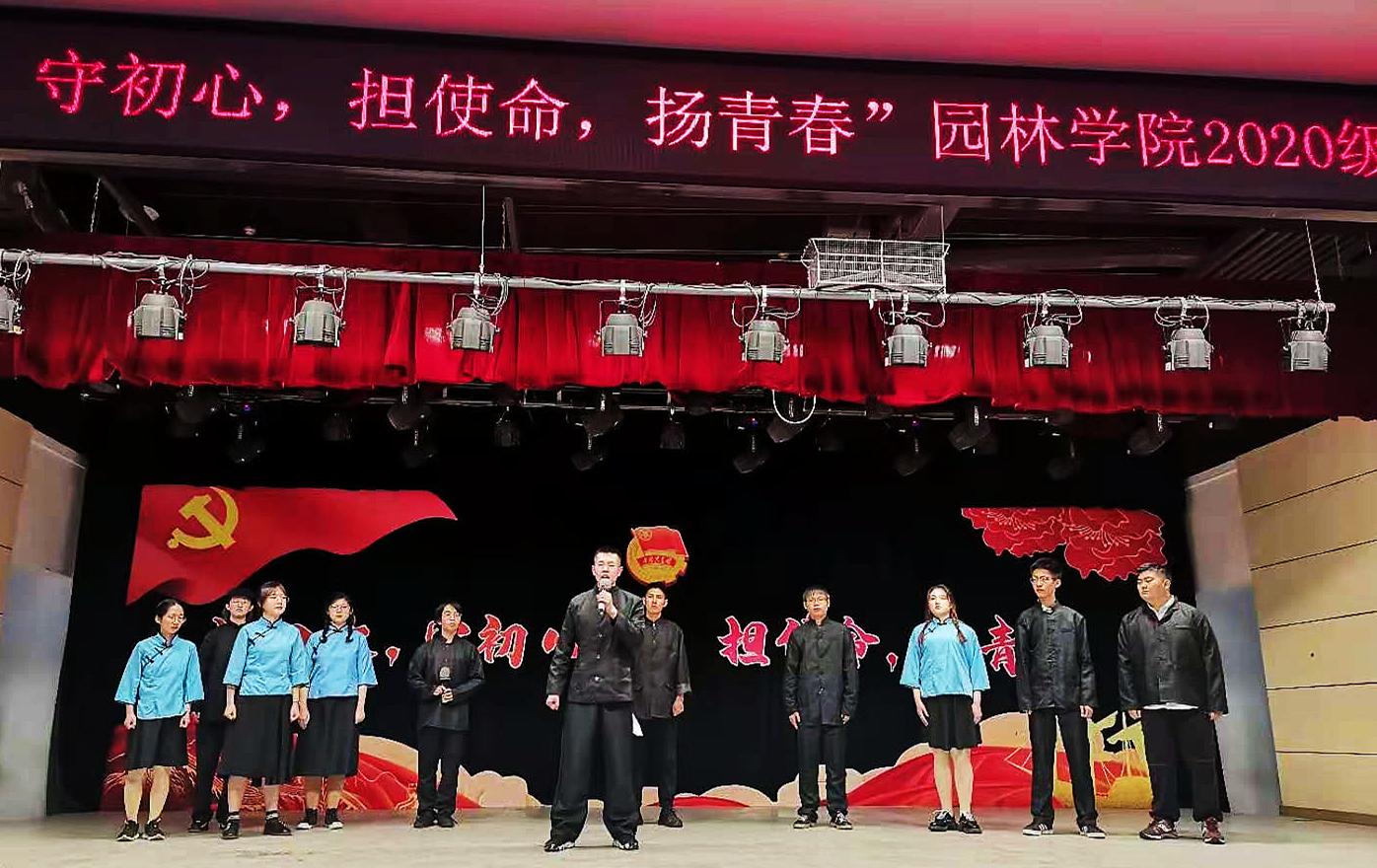 诗朗诵《党的礼赞》充分表达了园林学子对党的深深敬意与祝福,“生是为中国,死是为中国”、“我为你骄傲,我为你自豪”,众志成城,千锤百炼,党永远是国旗上最亮的一颗星,时刻闪烁着光芒;话剧《破晓》生动再现了勇于担当的中国青年在1919年五四运动中的耀眼光彩,精彩展示了一代又一代优秀青年紧跟党的步伐,始终站在时代的峰顶浪尖,青春不停步,始终跟党走;话剧《我们的时代长征》,通过一位老红军革命战士一家人的回忆和经历,用不同的时代镜头,分别展现了红军“革命理想高于天”的伟大精神、党的改革开放伟大成就和新时代青年主动投入到抗击疫情的战斗争中的蓬勃青春力量;歌曲《新征程》,园林学子以音符谱写初心,用歌声讴歌党的伟大荣光;话剧《惊雷》,讲述着我们国家“两弹一星”背后的故事,以钱三强、邓稼先等老一辈科学家为代表的国家功勋,将热爱祖国、无私奉献、自力更生、艰苦奋斗、大力协同、勇于攀登的“两弹一星”精神永久地镌刻在中国大地上;期间还进行了班级主题视频、班旗和班徽展示。经过激烈较量,最终,风景园林二班和风景园林三班摘得桂冠,城乡规划二班和风景园林四班荣获二等奖,城乡规划一班、环境设计一班和风景园林一班荣获三等奖,优胜奖则属于环境设计二班、园林一班和园林二班。伴随着热烈的掌声,整场比赛圆满落幕。
