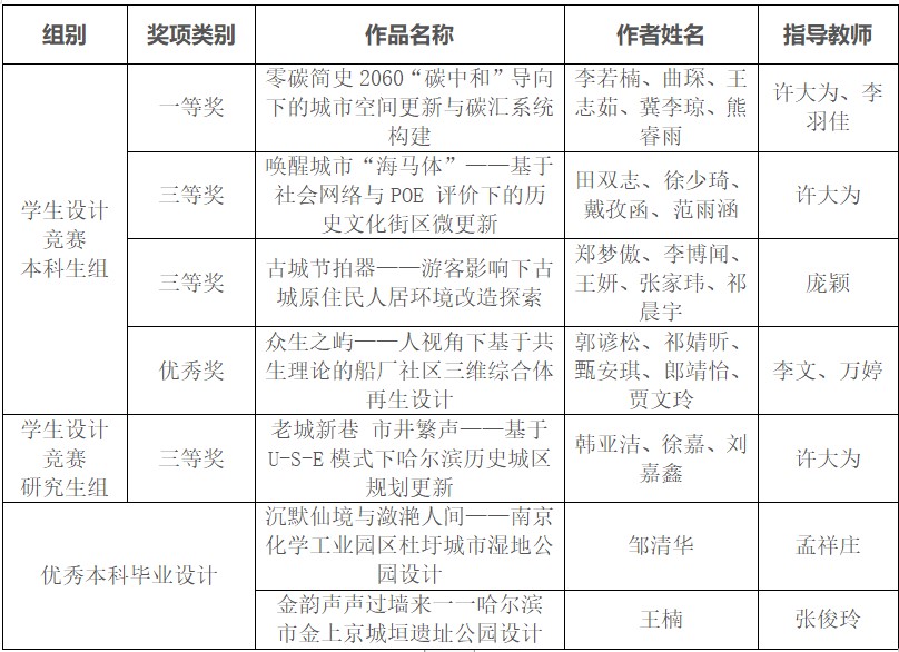 在这一场学术盛宴上,我院师生用良好的精神风貌和扎实的专业素养展现了我院风景园林教育教学成果,共同探讨未来了风景园林教育事业如何坚持以人民为中心,面向国家重大需求,快速高效适应经济社会发展需要的时代命题。据悉,2021年中国风景园林教育大会学生设计竞赛与优秀本科毕业设计展中,我院学生在184所高校众多优秀学子中脱颖而出,共获得一等奖1项,三等奖3项,优秀奖1项,优秀本科毕业设计2项。现将我院学生在2021年中国风景园林教育大会中学生设计竞赛以及优秀本科毕业设计的获奖信息公布如下: