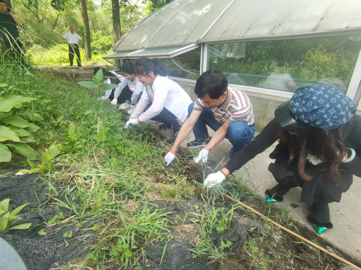 中国·3044am永利集团(MACAU)官方网站-欢迎光临领导班子与园林植物教工党支部、学生第一党支部成员共同来到学院苗圃实践教学基地,领导班子成员和教工党支部成员以身作则,除草护花,并在活动过程中开展实地教学。教师带动学生识别植物,将教学实践与劳动实践相结合,不仅为学生提供了一次良好的课堂实践的机会,更美化了实践教学基地的环境。同学们在这节师生交流互动的实践课堂上既收获了理论知识,又生动地将专业理论知识运用到实践劳动中。