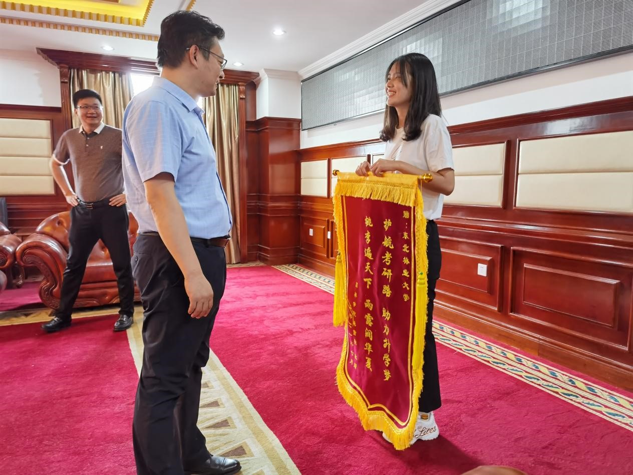 疫情无情人有情,在学校领导老师们的帮助下,龚雪薇同学顺利完成了考试,并以389分的成绩顺利考上了我校风景园林专业硕士研究生。在离校之际,为表示对学校、学院领导老师们的感谢,她特地送上了锦旗。