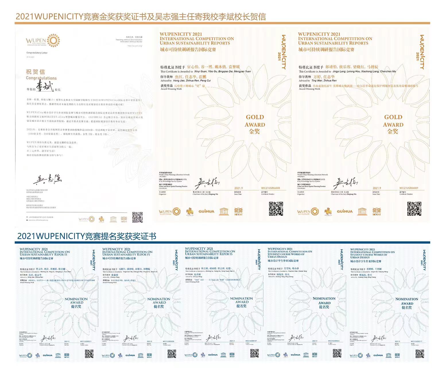 园林师生在2021WUPENiCity 国际竞赛中的获奖信息: