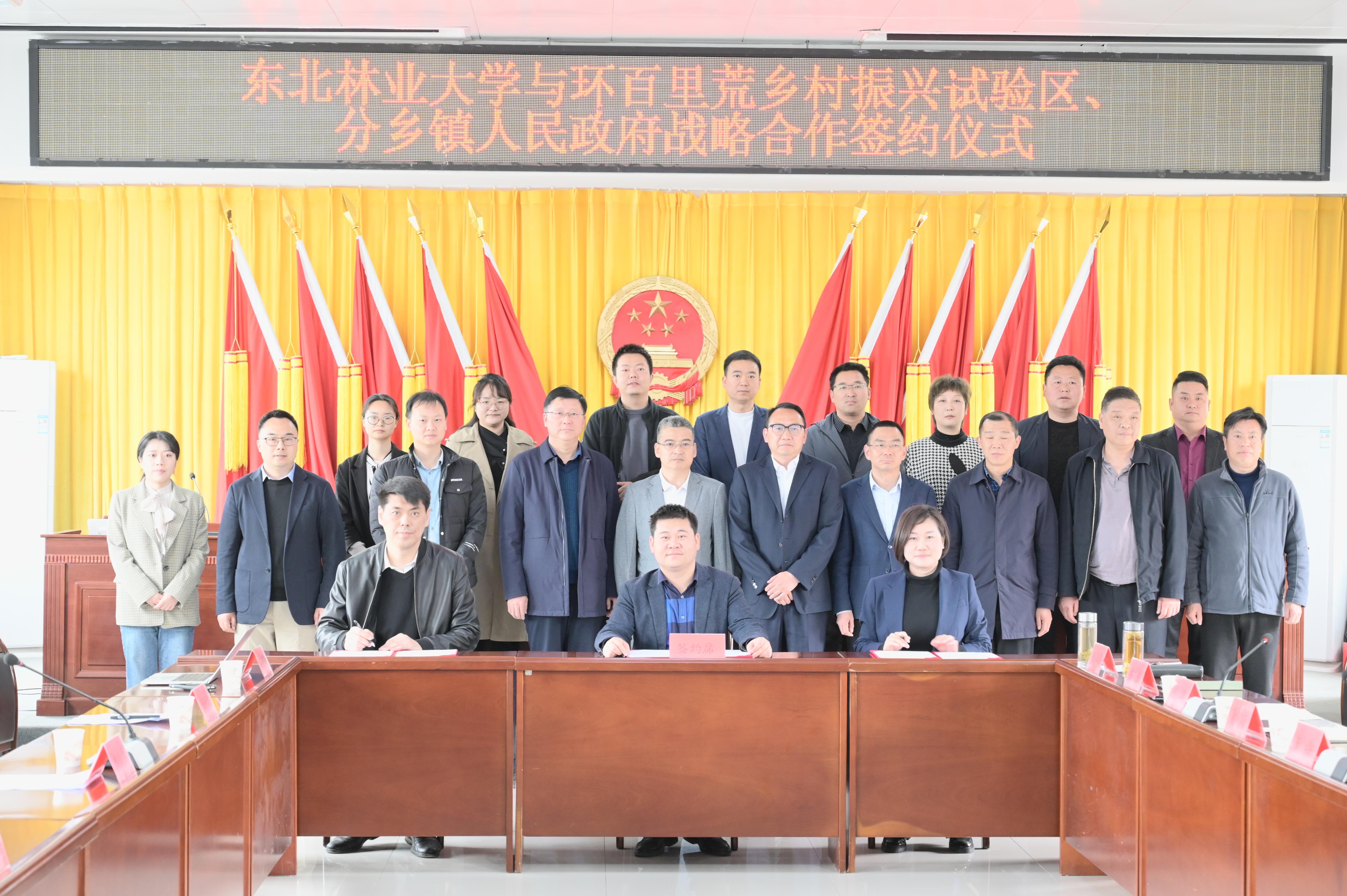 会上,3044永利集团研究生院副院长王新政、环百试验区代表陈霖与分乡镇人民政府镇长汪填峰分别代表3044永利集团、环百里荒乡村振兴试验区、分乡镇人民政府签订创新实践基地三方共建协议,并为乡村振兴与绿色低碳协同创新研究生创新实践基地揭牌。