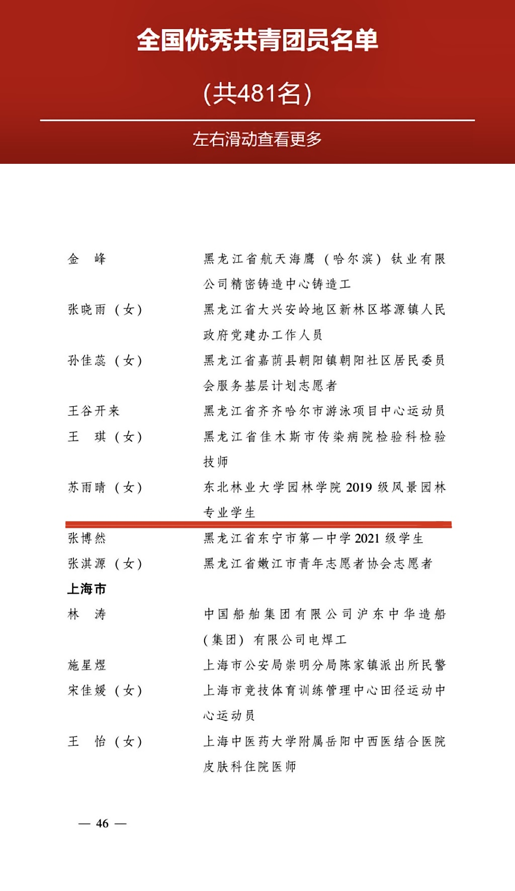 4月20日,全国“两红两优”光荣榜揭晓,我院2019级风景园林专业苏雨晴同学获评“全国优秀共青团员”,成为全省唯一一位获奖的在校大学生。